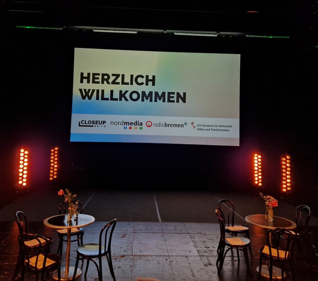 Heute war im Kleinen Haus das Stipendienprogramm CLOSEUP Bremen der nordmedia Film- und Mediengesellschaft Nds/ HB und der Senatorin für Wirtschaft, Häfen und Transformation förderte 2025 innovative Film- und Medienprojekte. Die nordmedia lädt zu den Abschlusspräsentationen der CLOSEUP Bremen-Teams 2025 ein, außerdem stellen sich die neuen CLOSEUP Bremen-Teams 2026 mit ihren Projekten vor. Moderator Felix Krömer führt durch das Programm und die kurzen Talks. (Originaltext Filmfest Bremen)