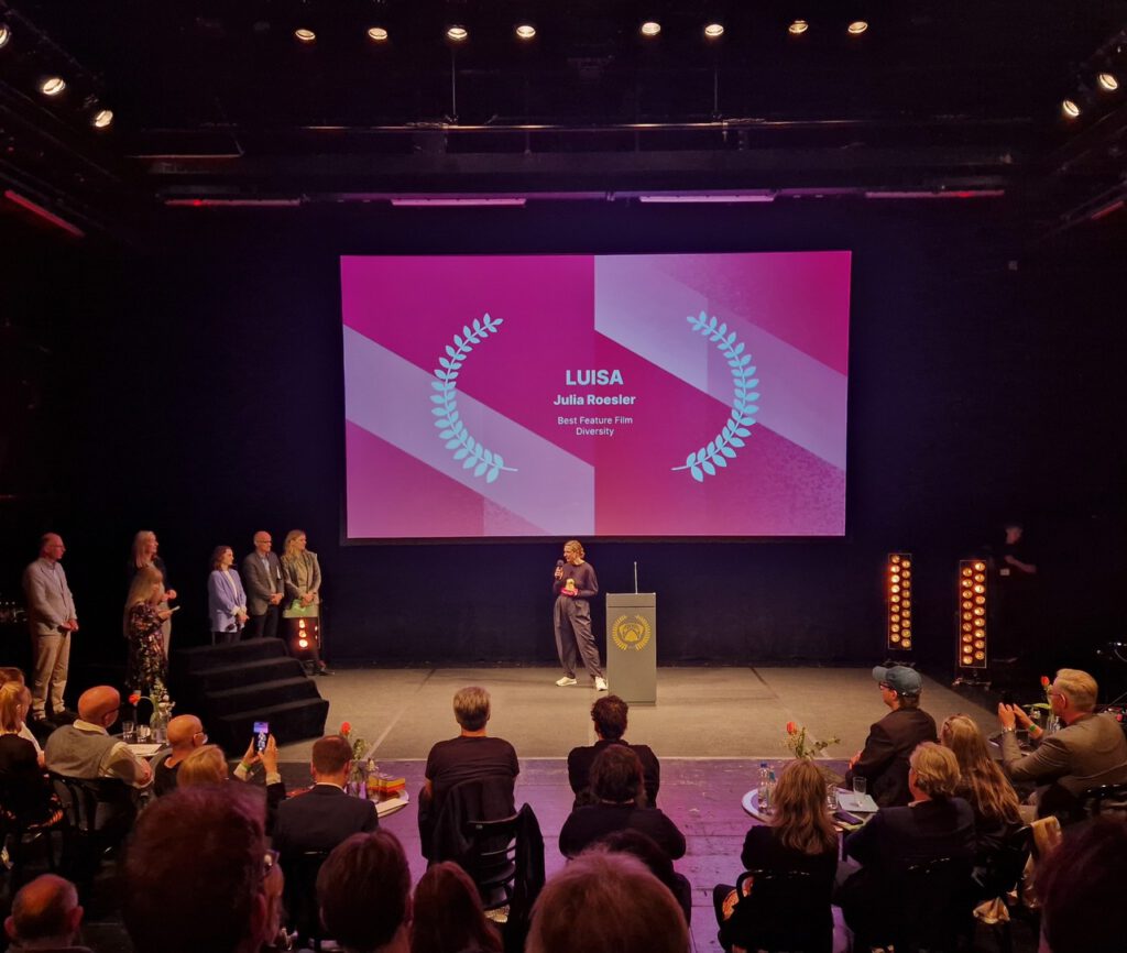 Wir (Jürgen J. Köster, Elizabeth Dinh, Herrad Fischer) stellvertretend für die „compagnons cooperative inklusiver film“ waren froh nominiert zu sein und schließen an den Worten von Julia Roesler (Preisträgerin für den inklusiven Spielfilm „Luisa“) an, wie wichtig Inklusion und Diversität in unsere Zeit ist. Danke, an das @filmfestbremen, dass es in diesem Jahr die Kategorie „Diversity“ gibt. Sowie an das gesamte Team vom Filmfest Bremen, für die tolle Organisation.
