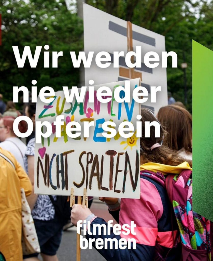 Unser inklusiver Dokumentarfilm „Wir werden nie wieder Opfer sein! Menschen mit Behinderung und/ oder psychischer Erkrankung gegen die extreme Rechte!“ wird am Samstag, 18.04.2026 um 17 Uhr im Kleinen Haus im Rahmen des Filmfestes Bremen gezeigt.